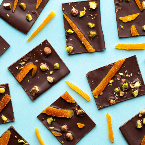 The flavour of Orange paired Dark Chocolate takes centrestage like very few blends! This citrus burst has gorgeous strips of homemade orange peel preserve complementing the sweetness of the pistachio infused chocolate.